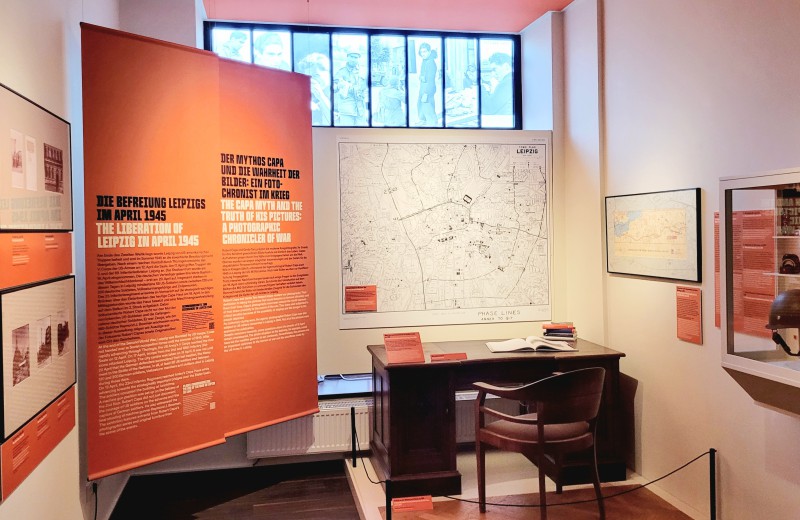 Das Capa-Haus ist eine der wichtigsten Erinnerungsstätten an die Befreiung Leipzigs vom Nationalsozialismus. Im April 1945 kam Robert Capa als US-amerikanischer Kriegsfotograf mit den Alliierten nach Leipzig. In der damaligen Frankfurter Straße 39 (heute Jahnallee 61) entstand seine weltbekannte Fotoserie „The Last Man to Die“, die die letzten Kämpfe im Zuge der Befreiung Leipzigs durch US-amerikanische Truppen und den Tod des Soldaten Raymond J. Bowman am 18. April 1945 dokumentiert. Diese Fotoserie und ihre Entstehung stehen im Mittelpunkt der Dauerausstellung „War is Over“.