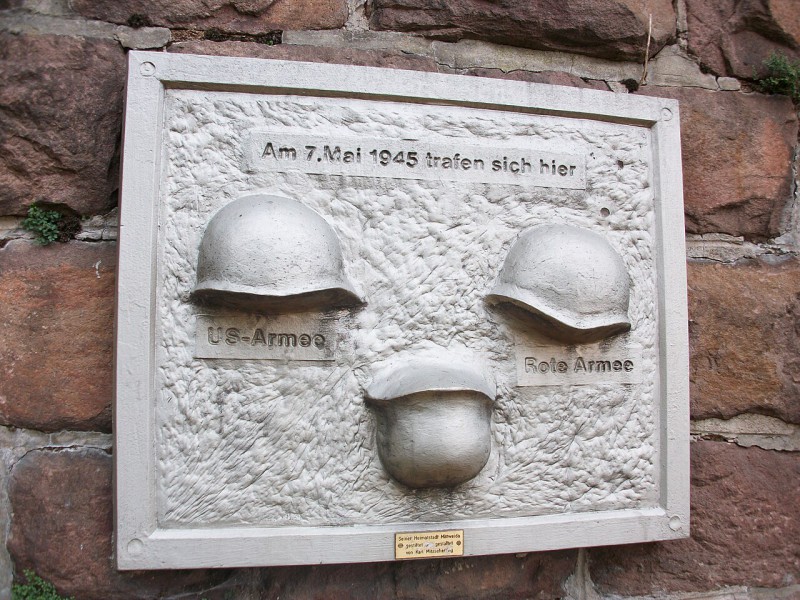 Am 15. April 1945 besetzten US-amerikanische Truppen die Stadt Mittweida zogen sich aber am 25. April 1945 wieder nach Rochlitz zurück. Am 7. Mai 1945 trafen sich in Mittweida die alliierten Streitkräfte der US-Army und der Roten Armee, woran eine Tafel am nördlichen Widerlager der einstigen Eisenbahnüberführung Hainichener Straße erinnert. Quelle: https://de.wikipedia.org/wiki/Mittweida