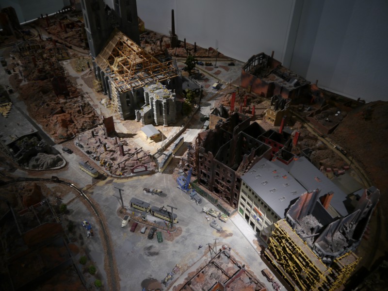 Ein Ausstellungsabschnitt im Städtischen Museum Halberstadt mit einem Großmodell der zerstörten Stadt dokumentiert diesen tragischen Abschnitt der Stadtgeschichte und die Nachkriegszeit in Halberstadt.