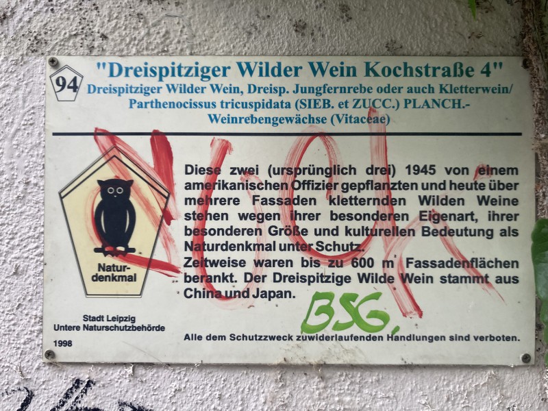 An einem Gebäude in der Kochstraße befindet sich eine Plakette der Naturschutzbehörde der Stadt Leipzig. Der "Dreispitzige Wilde Wein Kochstraße 4" wurde 1945 von einem US-amerikanischen Offizier gepflanzt und berankt heute immer noch das Haus.